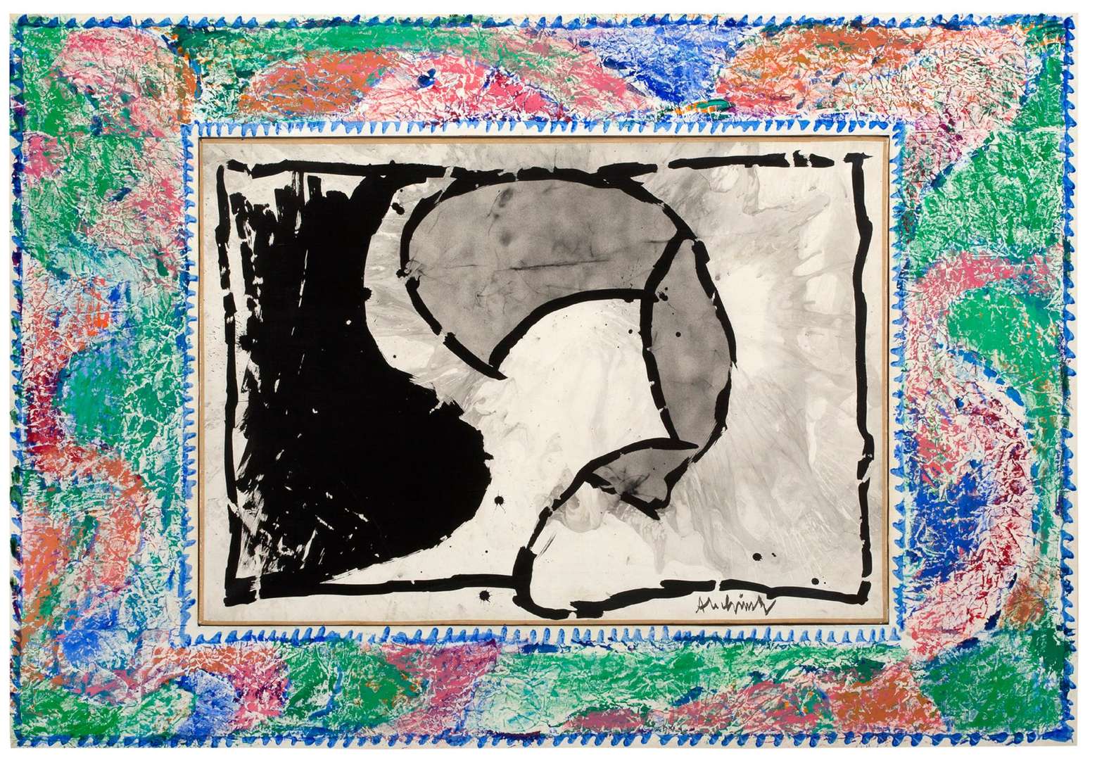Central ink on vellum mounted on canvas, signed lower right, acrylic border on China paper mounted on wood, countersigned, dated, titled on the reverse of the central part and the border, numbered 17 on the back of the central part