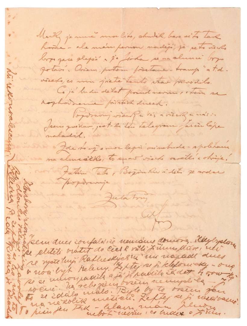La lettre est signée Alfons Mucha . A la fin de la lettre, figure un texte autographe d'une autre main.