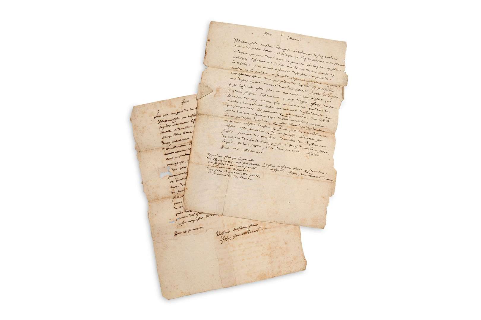 2 L.A.S. «Jehan Fran. Suares» et «Jehan Francois Suares» adressées à sa soeur, Hélène de SUAREZ, en Avignon.
