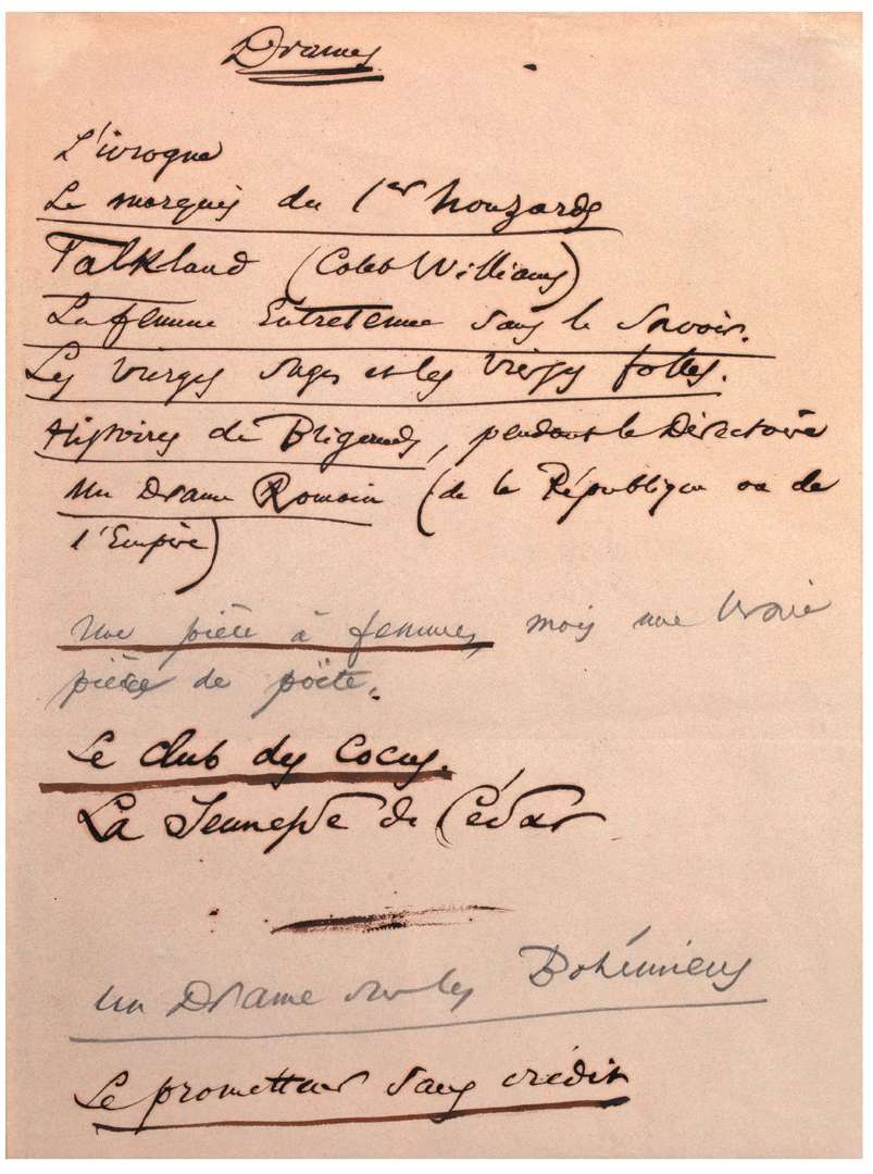 Baudelaire dans une lettre calligraphiée «...Une pièce à femmes, mais une vraie pièce de poète...» ...«les vierges sages et les vierges folles»...«le club des cocus...»
