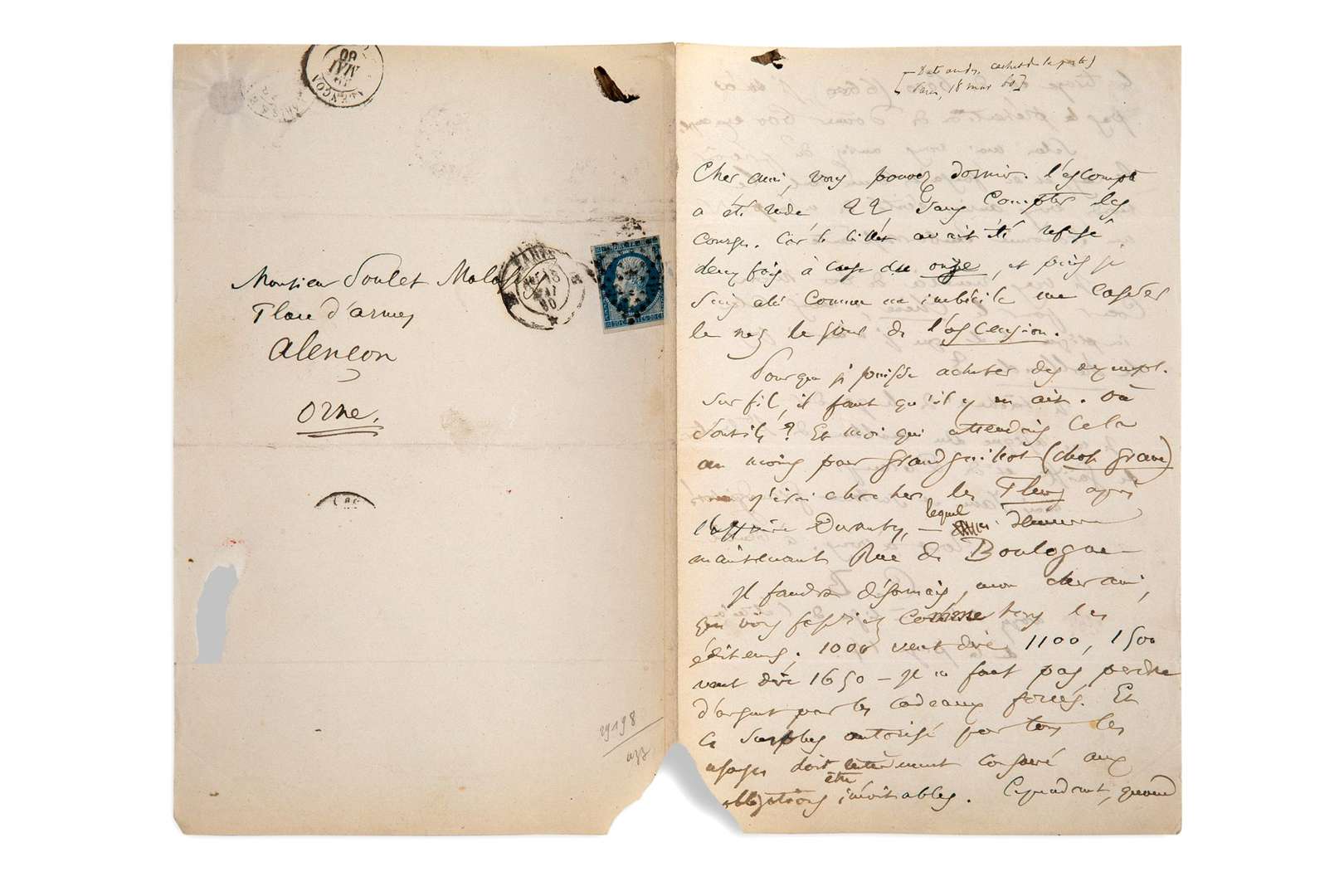 -MALASSIS à Alençon| 2 pages in-8, adresse avec timbre (angle déchiré sans perte de texte).