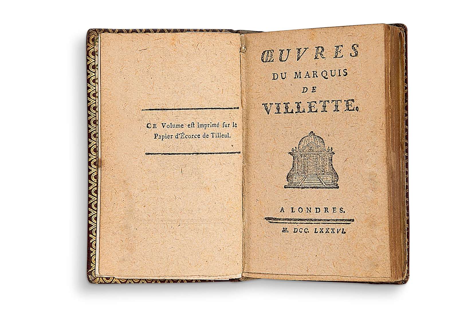 Seconde édition collective des oeuvres du sulfureux marquis de Villette, l'ouvrage contient de nombreuses pièces en vers, mais aussi de belles lettres à Voltaire, dont Villette était un fervent admirateur.