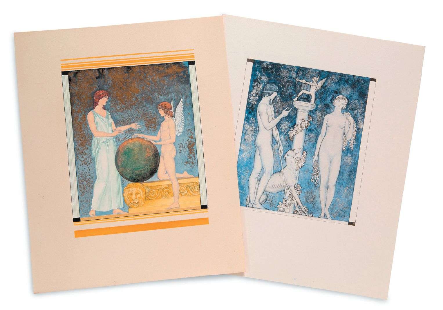 Notre exemplaire ne comporte pas les 3 états supplémentaires du frontispice, mais contient, en plus, une décomposition des couleurs du frontispice, une épreuve définitive de la planche de «la décollation», une suite en bleu de toutes les illustrations autres que le frontispice reproduites en fac-similé, et une décomposition des couleurs d'une autre planche ainsi que son épreuve définitive.