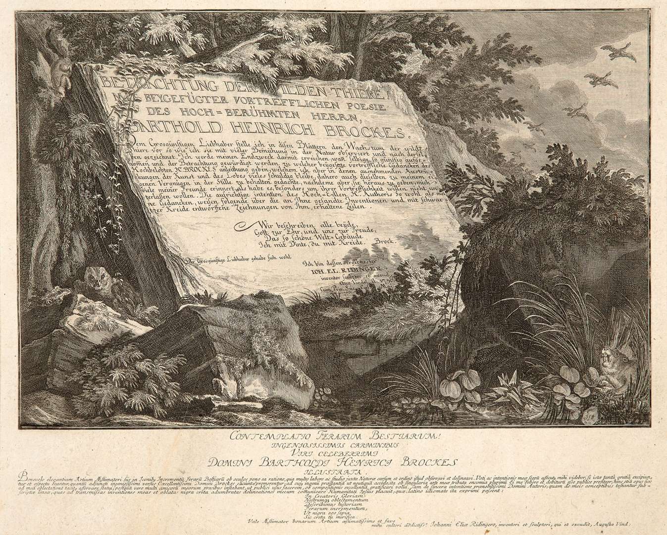 Contemplatio ferarum bestiarum! Ingeniosissimis carminibus viri celeberrimi domini Bartholdi Henrici Brockes illustrata... Johann.