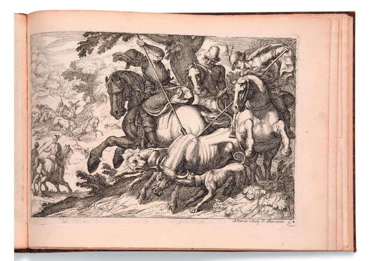 Belle suite de 10 gravures sur cuivre, d'après Tempesta, numérotées 1 à 10 et mention «A Paris chez P. Mariette», non signées et non légendées.
