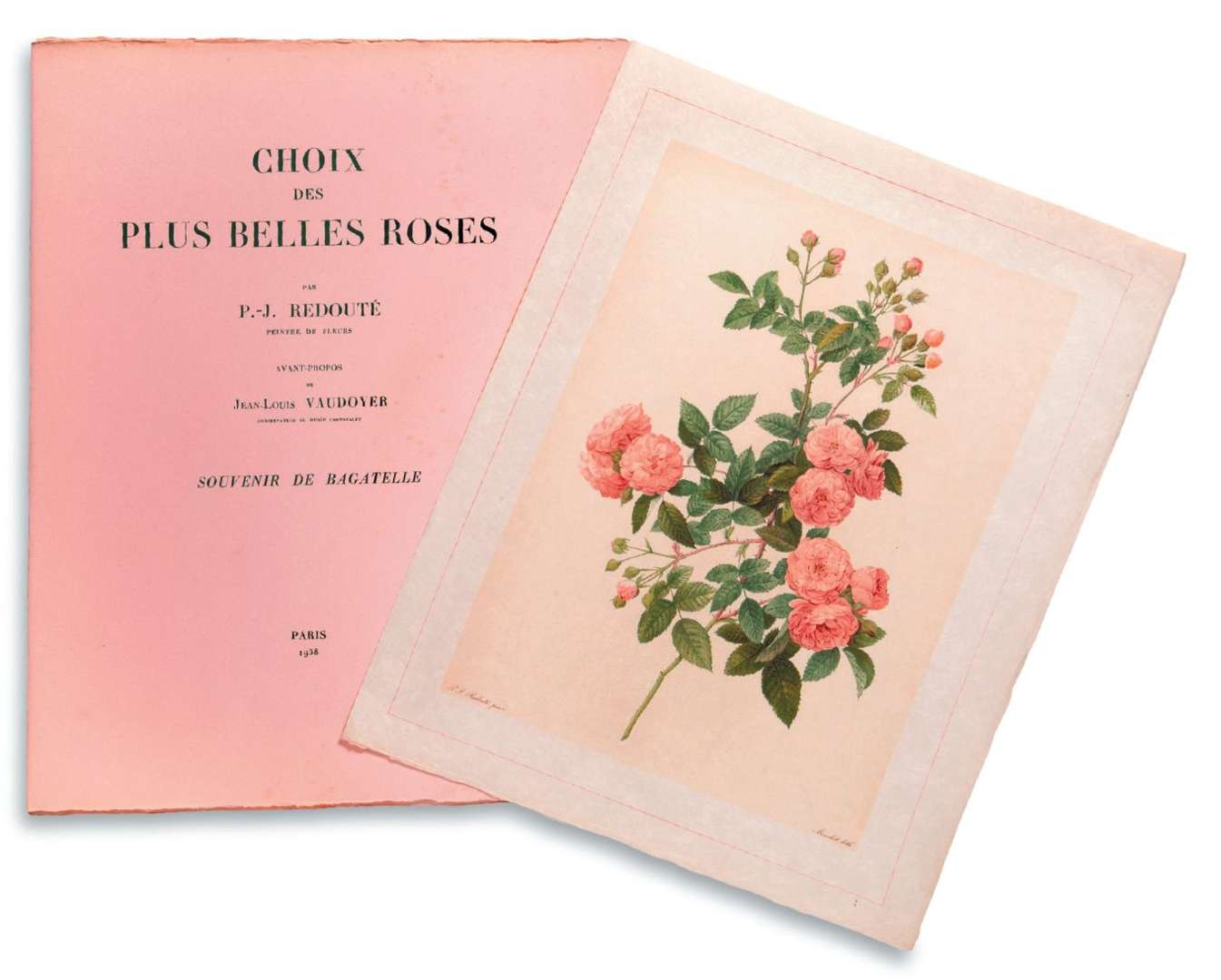 L'on joint : REDOUTÉ P.-J., Choix des plus belles roses. Nouvelle série de douze roses. Paris, 1951. In-folio, en feuilles, sous couverture imprimée à rabats.