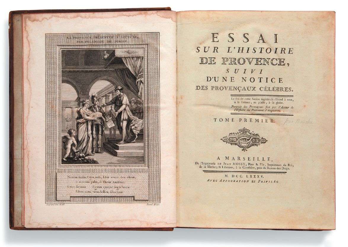 Marseille, Jean Moissy Père & Fils, 1785. 2 volumes in-4 (280 x 223 mm), Plein veau marbré, dos à nerfs orné, pièces de titre de maroquin rouge, pièces de tomaison de maroquin brun, roulette sur les coupes, tranches rouges (reliure d'époque).