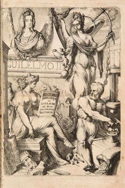 Histoire de Guillaume III, roy d'Angleterre, d'Écosse, de France, et d'Irlande, prince d'Orange, &c. [...]. Par Médailles, Inscriptions, Arcs de Triomphe, & autres monumens Publics. Amsterdam, s.n., 1692. Petit in-folio, veau granité, dos orné, pièce de titre rouge, tranches jaspées (Reliure de l'époque).