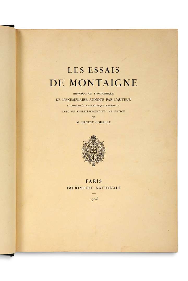 • Les Essais de Montaigne. Reproduction typographique de l'exemplaire annoté par l'auteur et conservé à la bibliothèque de Bordeaux avec un avertissement et une notice par Ernest Courbet.