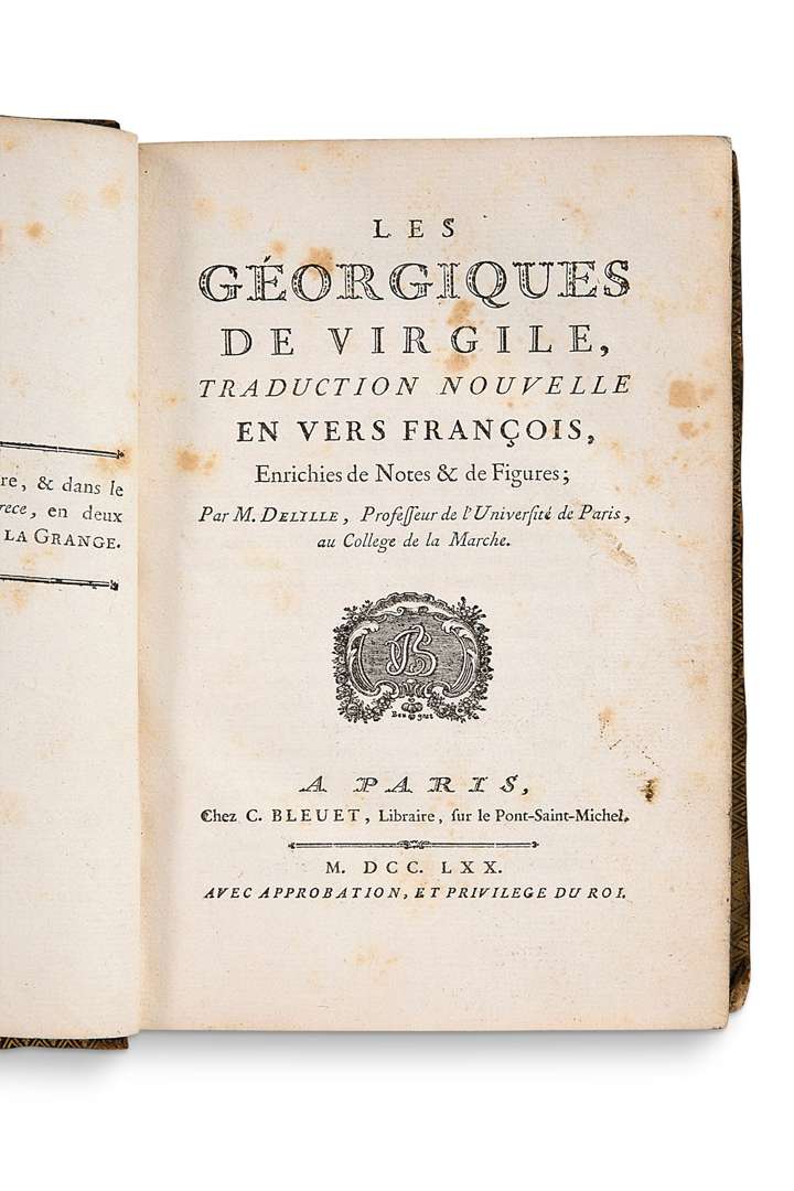 Édition originale de cette traduction en vers qui fit le succès de Jacques Delille. Elle est accompagnée de l'original latin. Premier tirage de la belle illustration d'Eisen comprenant quatre figures hors-texte gravées par de Longueil.