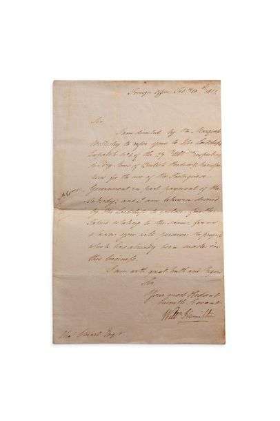 L.S. «Willm Hamilton», Foreign Office [Londres] 10 février 1812, à Charles STUART | 1 page in-fol. (petite fente au pli) | en anglais.