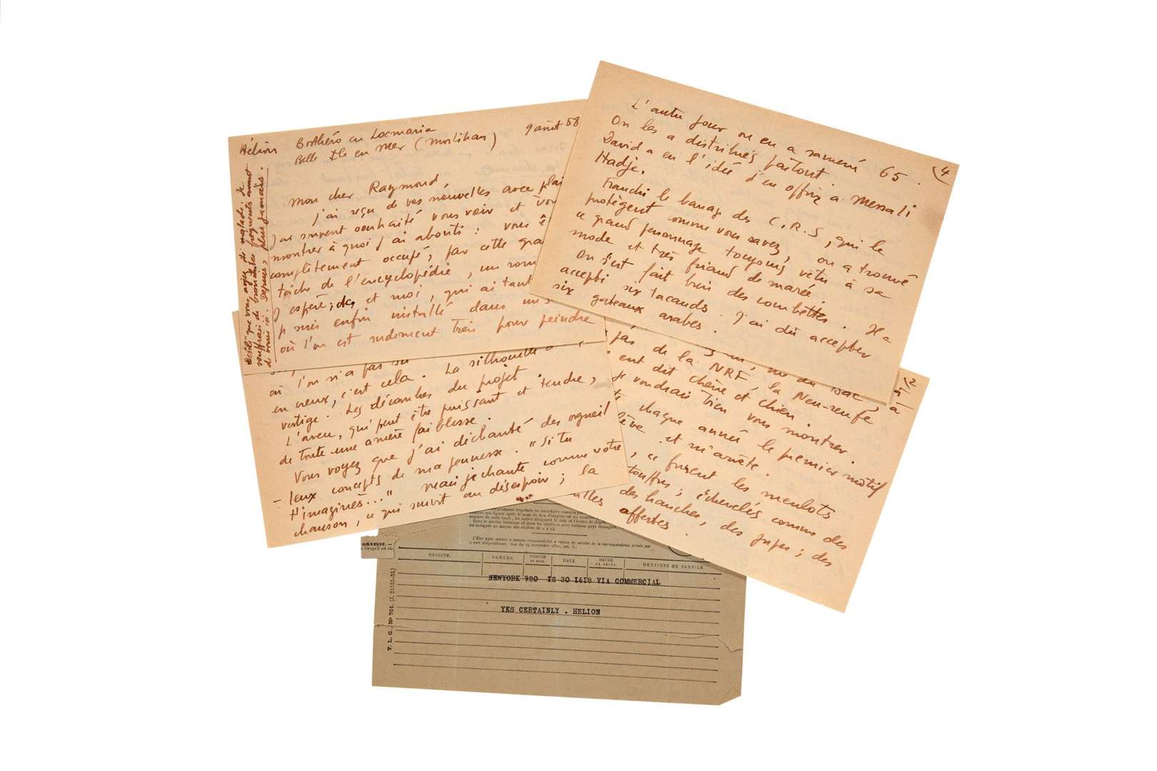 On joint un carton d'invitation signé par HÉLION pour une de ses expositions et adressé à Raymond Queneau | plus un télégramme adressé de New-York à Raymond Queneau : «Yes certainly. HELION».
