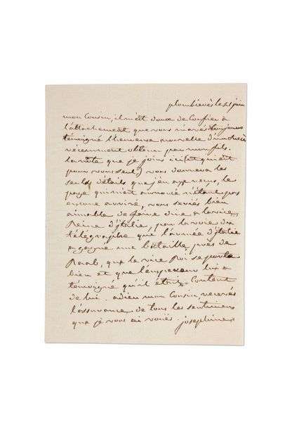 L.A.S. «Josephine», Plombières 21 juin [1809], à «mon cousin» [l'Archichancelier CAMBACÉRÈS] | 1 page in-4 à bordure décorative gaufrée.