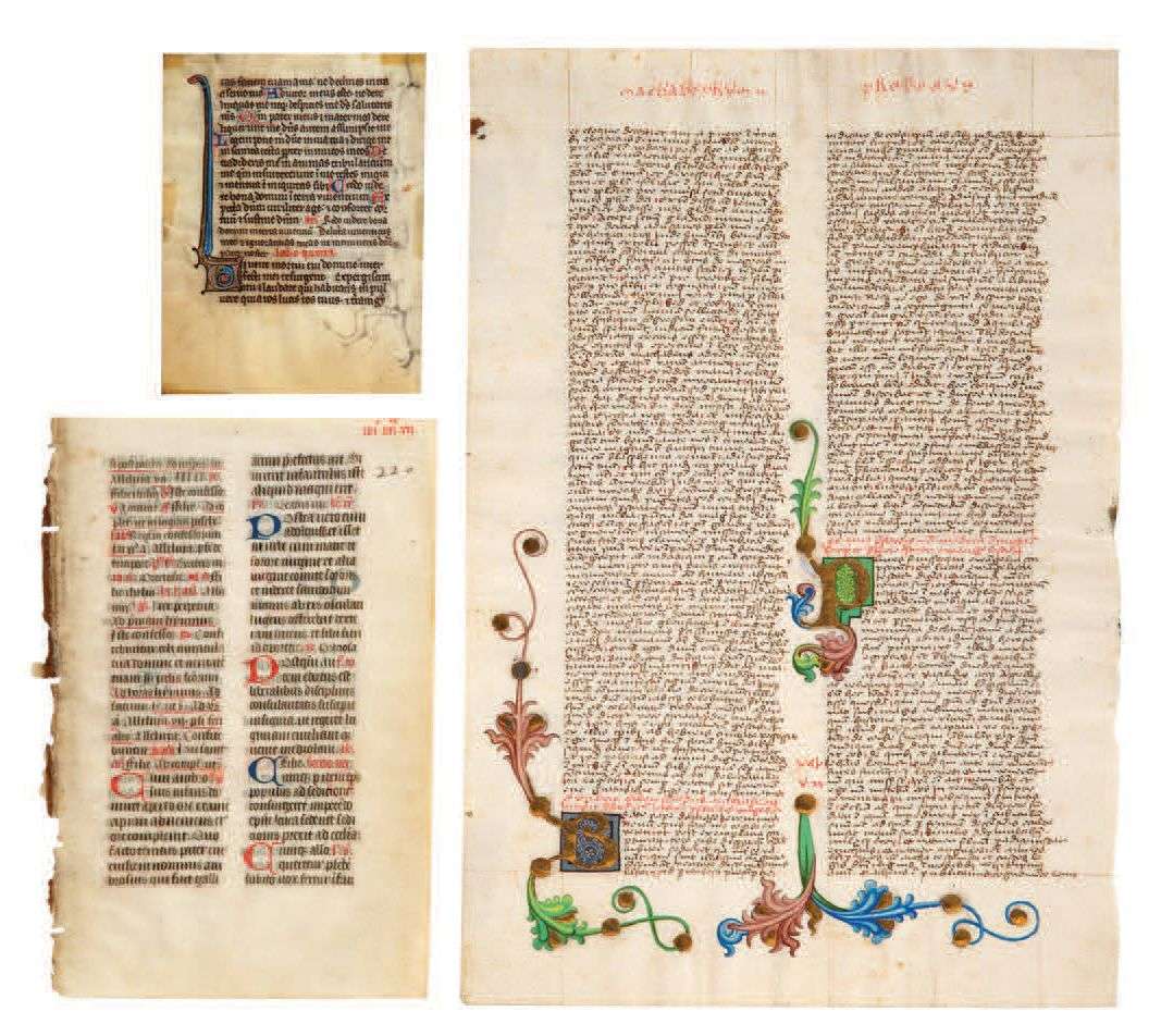 ENSEMBLE de 5 feuillets extraits de manuscrits divers.