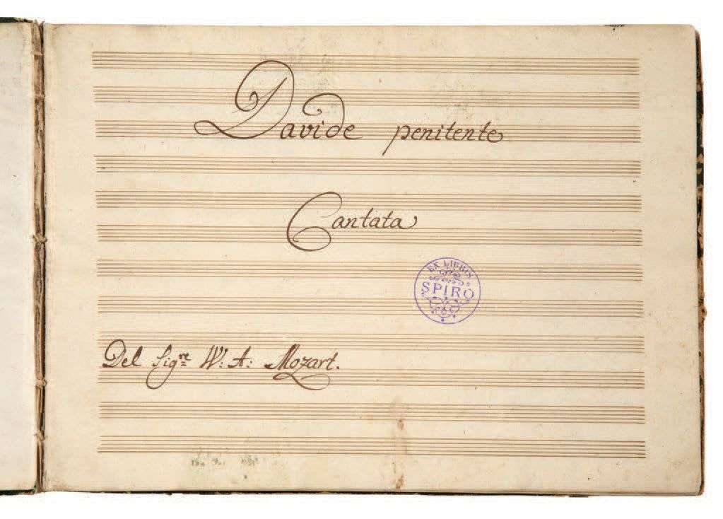 La cantate ou oratorio Davidde penitente K.469, où Mozart a réutilisé en partie la musique de sa Messe solennelle en ut mineur K.427/417a, a été créée à Vienne le 13 mars 1785. Il n'en existe pas de manuscrit autographe complet. Cette rare copie, proche de celle de l'Österreichische Nationalbibliothek de Vienne, en lien avec la première audition, est d'autant plus précieuse que l'œuvre n'a été éditée qu'en 1882. Cette copie de la partition d'orchestre est bien complète des dix numéros de l'œuvre.