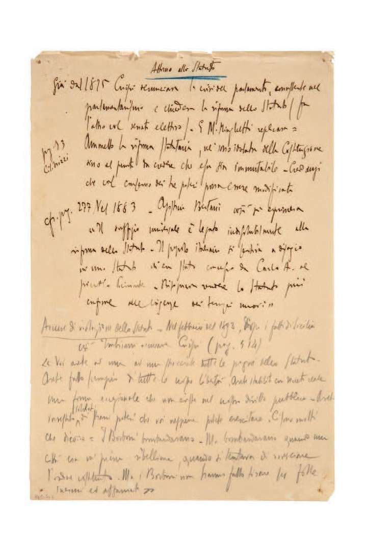 MANUSCRIT autographe, Attorno allo Statuto, [automne 1924?] | 1 page in fol. (en partie au crayon)| en italien.