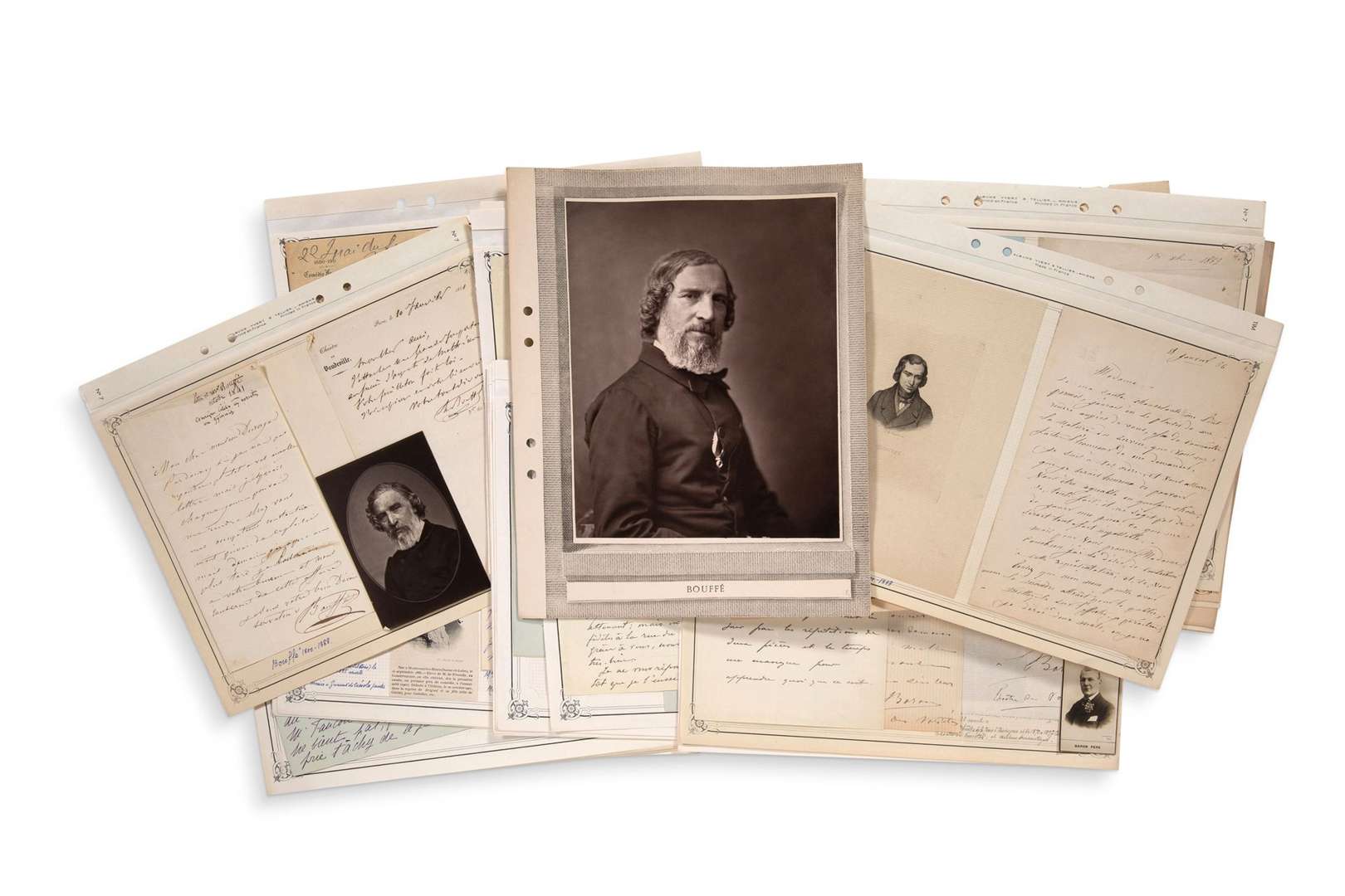 Plus de 400 lettres, pièces ou cartes, la plupart L.A.S., plusieurs montées sur des pages d'album avec des photos et portraits, coupures de presse et divers documents.
