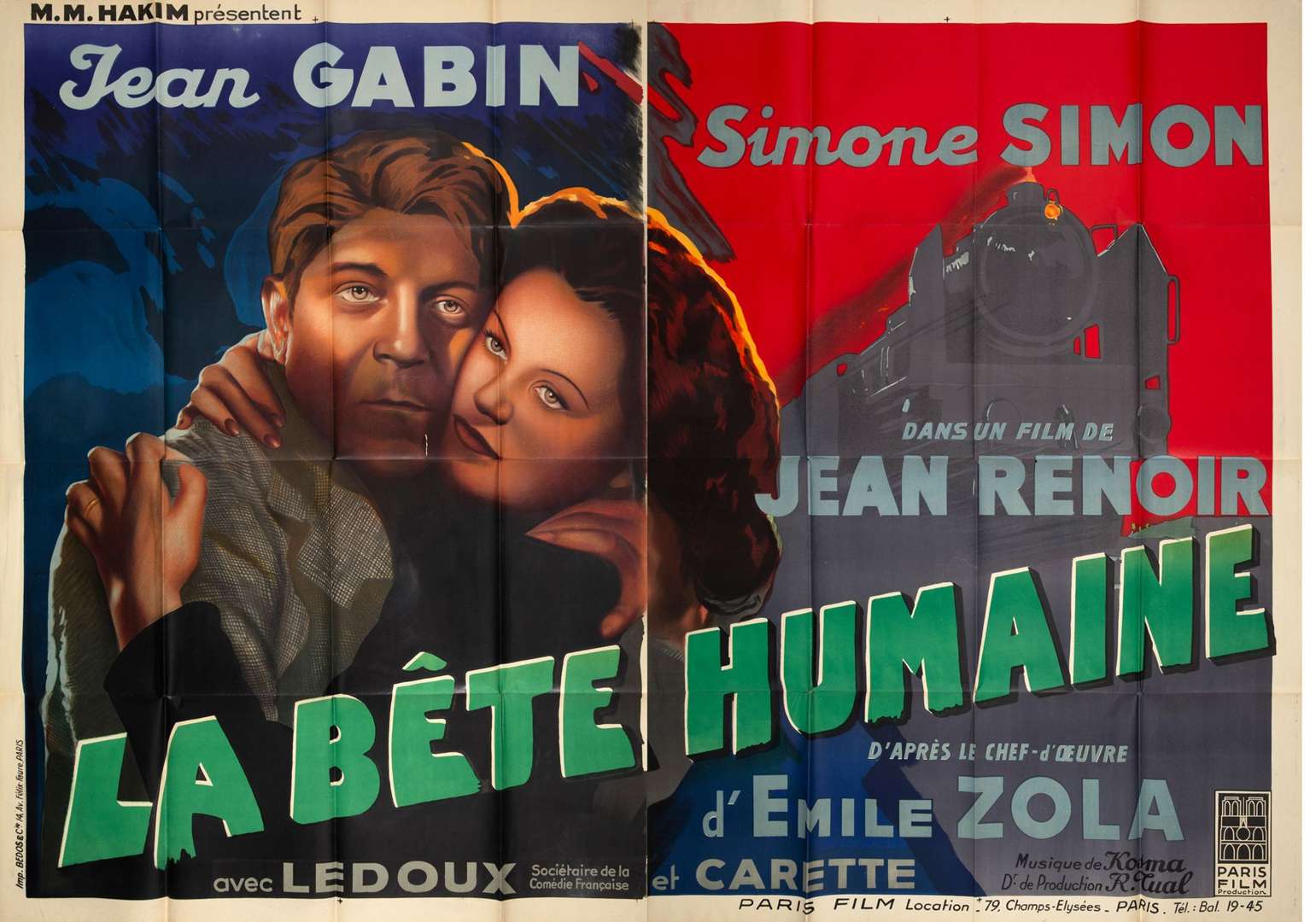 Affiche en couleurs du film de Jean RENOIR d'après le roman de Zola (1938), avec Jean Gabin et Simone Simon.