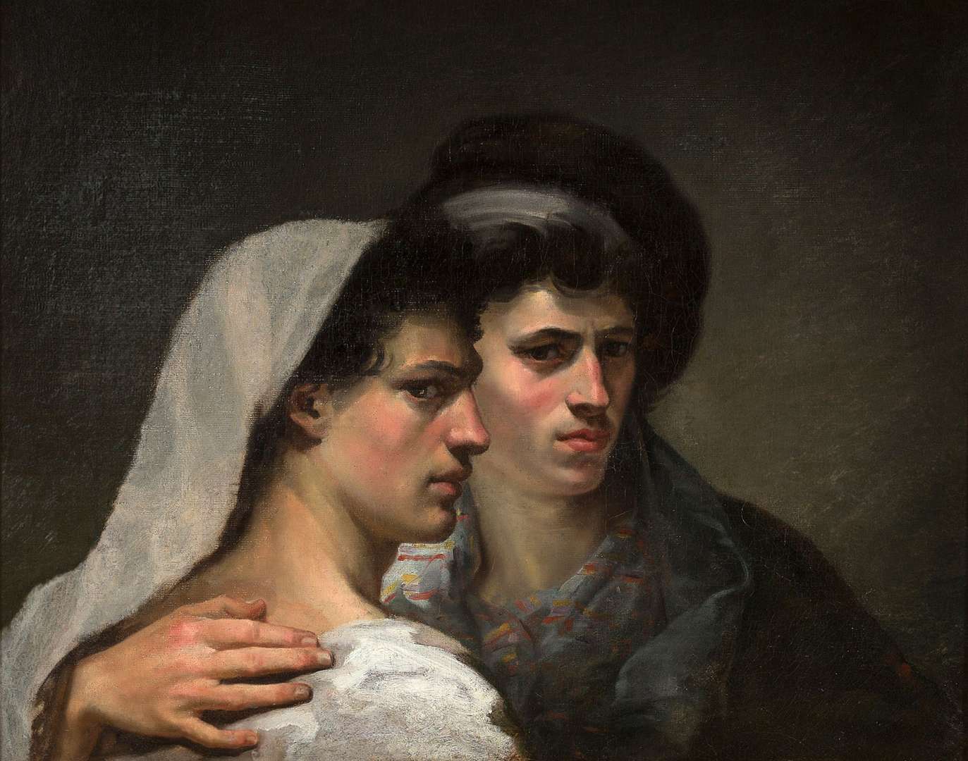 Les deux personnages choisis par l'artiste sont des portefaix, ceux qui portent des fardeaux. Modèles d'atelier faciles à exploiter, ils offrent au peintre une vision brute du labeur. Sur un fond rapidement brossé, les figures se détachent de l'obscurité que rappelle leur regard aux yeux noirs. Les visages sont rougis par le soleil, les têtes couvertes d'accessoires les protégeant du poids, du frottement de leurs fardeaux. Qu'ils soient en réalité modèles vêtus en portefaix ou réels portefaix, le peintre choisit de discrets rappels au quotidien d'un métier ingrat. Sigalon mêle ainsi ses talents de portraitiste à ceux de peintre d'histoire, oscillant entre visages caractérisés et étude préparatoire possible à une plus grande composition.