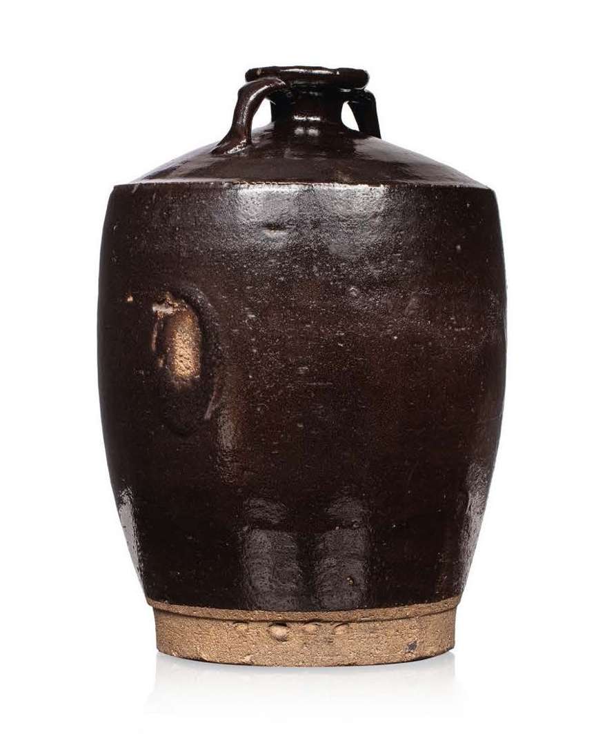 Vase en céramique à deux anses, émaillé «peau de serpent».