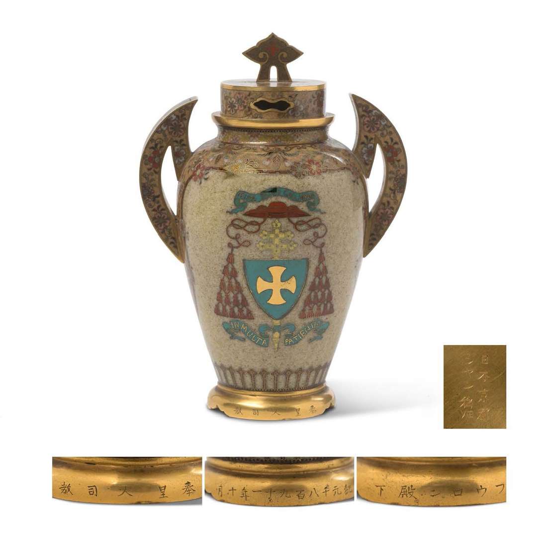 Ce vase lui aurait été offert par Jean Inabata, homme d'affaires japonais de Kyôto, catholique, qui vint à Lyon pour étudier les teintures pour tissus.