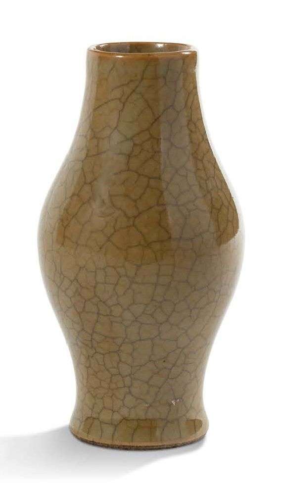 Vase en céramique à décor craquelé émaillé vert olive.