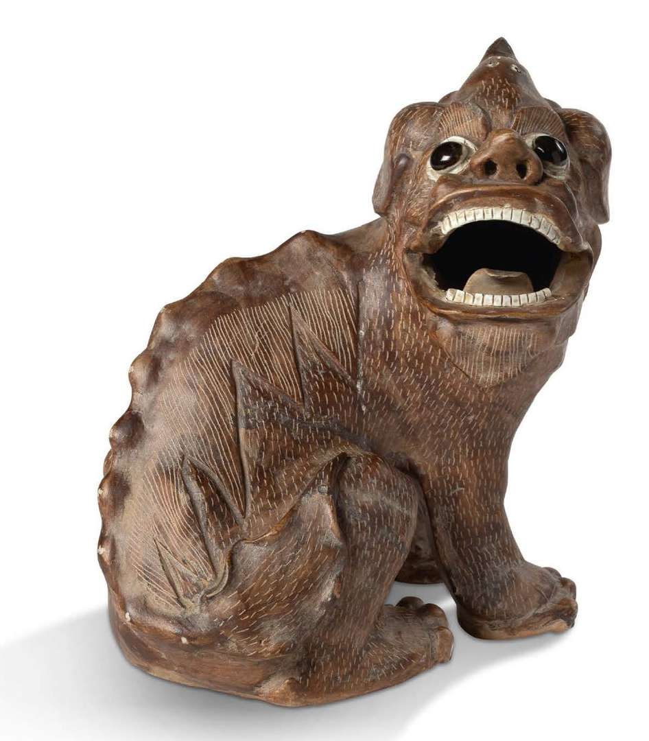 Sujet en terre cuite vernissée représentant un Qilin assis, la tête tournée.
