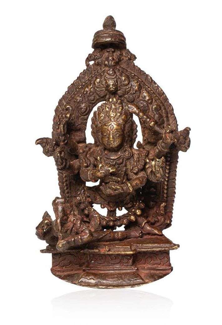 Petite sculpture en bronze avec des traces de dorures représentant Mahakala.