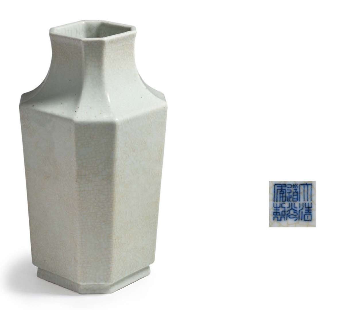 Vase balustre octogonal en porcelaine émaillée céladon craquelée avec marque