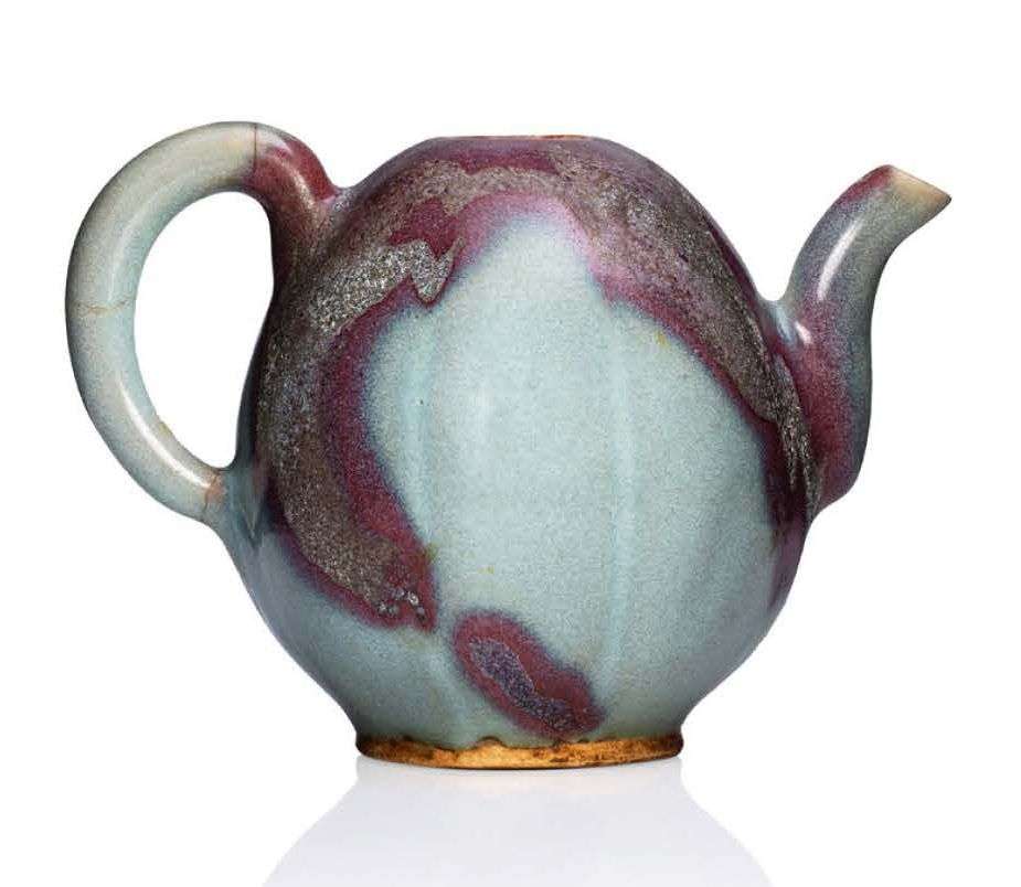 Verseuse en forme de melon d'eau en céramique émaillée bleu lavande de type Junyao.