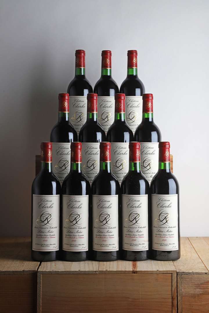 12 B CHÂTEAU CLARKE (Caisse Bois d'origine) (2 e.t.h. légères) - 1982 - Listrac-Médoc
