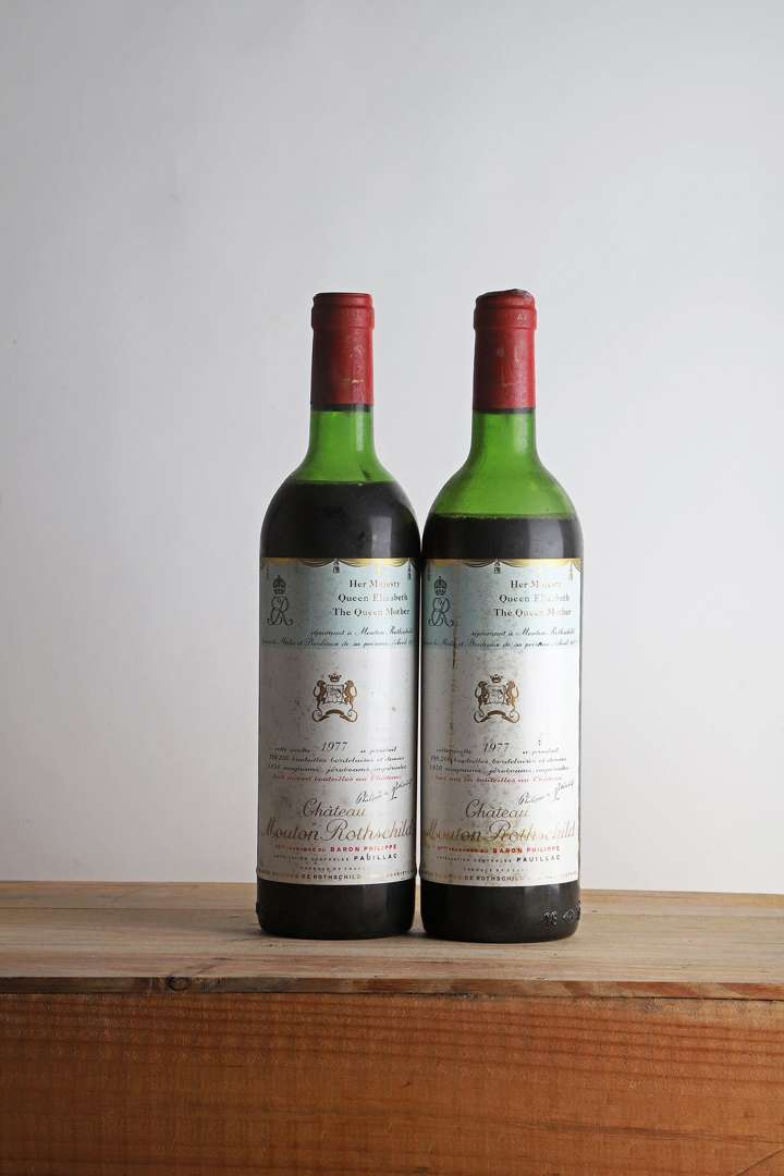 2 B CHÂTEAU MOUTON ROTHSCHILD (1 H.E.+| 1 B.E.+| e.t.h| 1 c.c. bosselée) - 1977 - GCC1 Pauillac