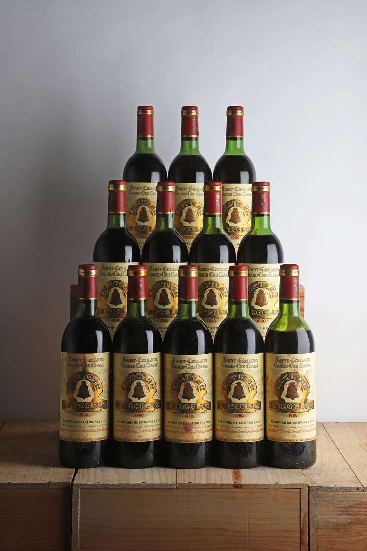 12 B CHÂTEAU L'ANGÉLUS (Caisse Bois d'origine) (1 T.L.B.+| 3 T.L.B| 5 H.E.+| 2 H.E. et 1 M.E| 3 e.t| 2 e.l.a| 2 c.a. bas de jupes) - 1980 - GCC1A Saint-Emilion