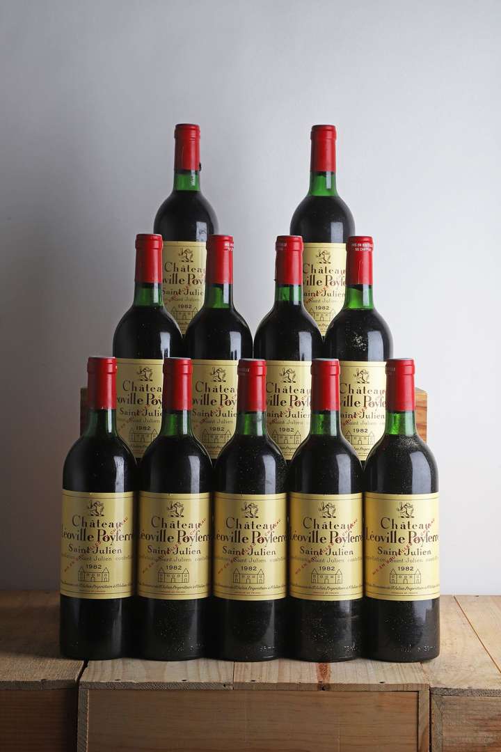 11 B CHÂTEAU LÉOVILLE POYFERRÉ (Caisse Bois de 12 remise à l'acquéreur) (2 B.G| 6 T.L.B.+ et 2 T.L.B| 1 c.a. côté| capsules négoce) - 1982 - GCC2 Saint-Julien