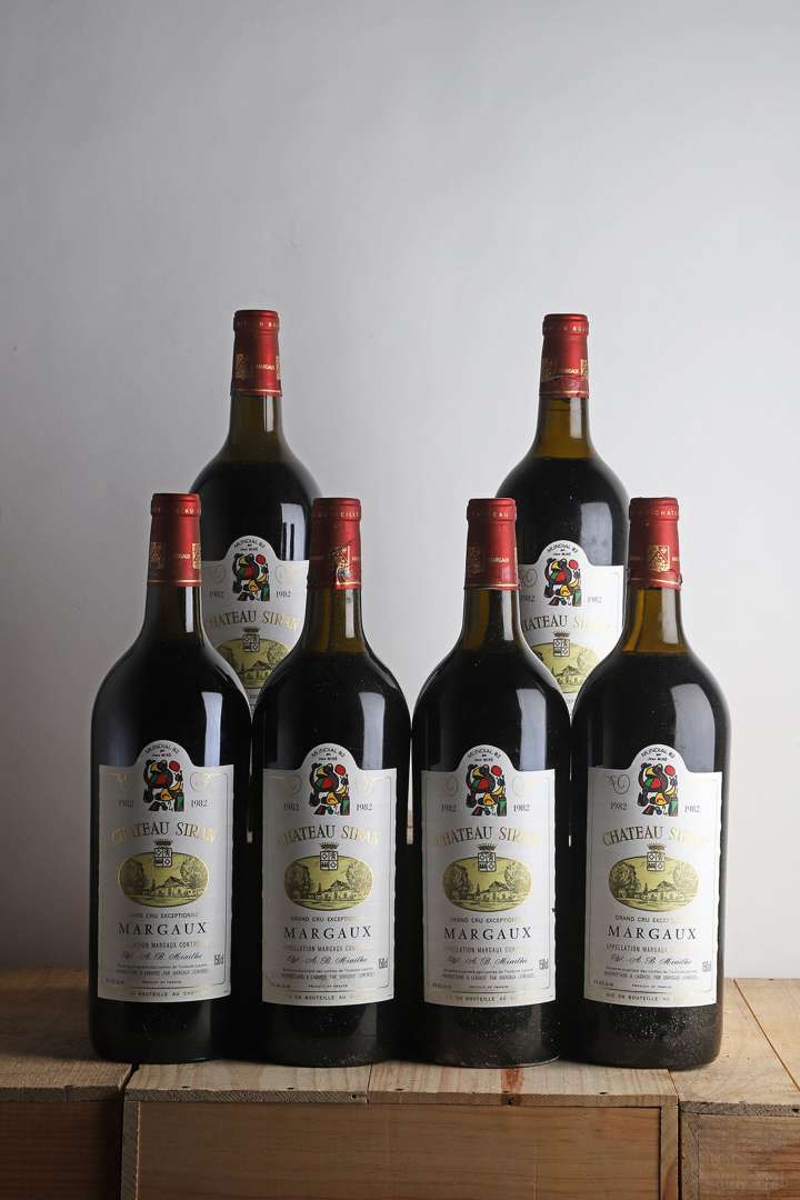 6 Mag CHÂTEAU SIRAN (Caisse Bois d'origine) (2 T.L.B.+| 3 H.E.+| 1 H.E| 2 e.l.a| 3 c.a. bas de jupes et 2 c.a. côté) - 1982 - Margaux