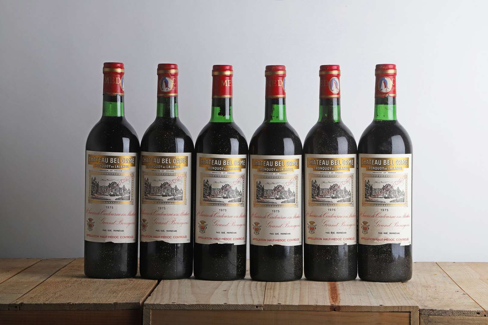 6 B CHÂTEAU BEL ORME TRONQUOY DE LALANDE (Caisse Bois d'origine) (T.L.B.+ ou mieux| e.a| 2 c.a. bas de jupes) - 1975 - Haut-Médoc