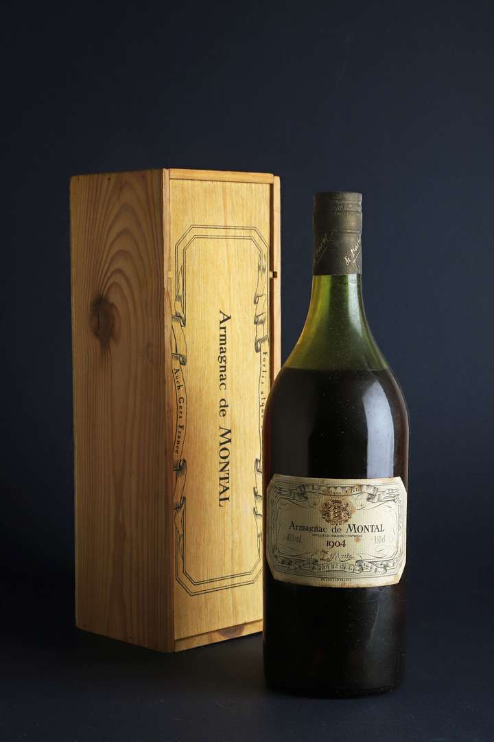 1 Mag ARMAGNAC 150 cl 38% (Caisse Bois d'origine) (6,5 cm| e.t.h. légères) - 1904 - De Montal