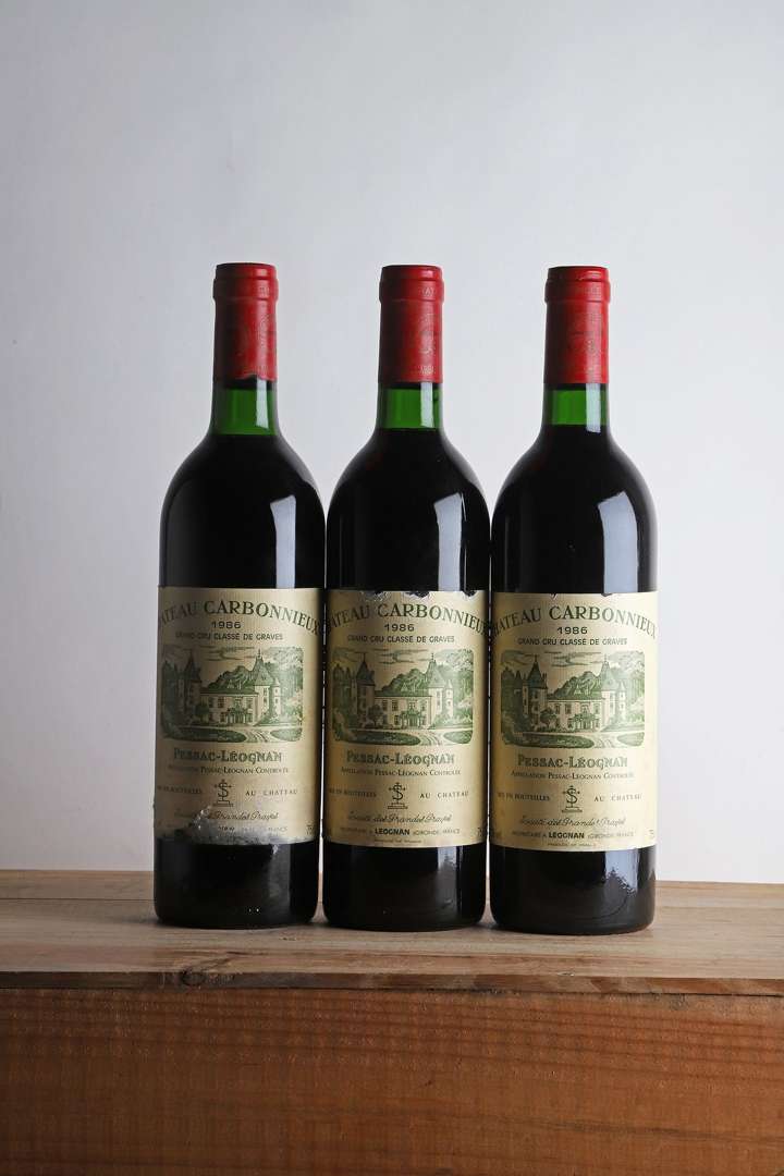 3 B CHÂTEAU CARBONNIEUX Rouge (2 B.G| 1 T.L.B.+: 1 e.a| 2 e.t.a.) - 1986 - CC Graves