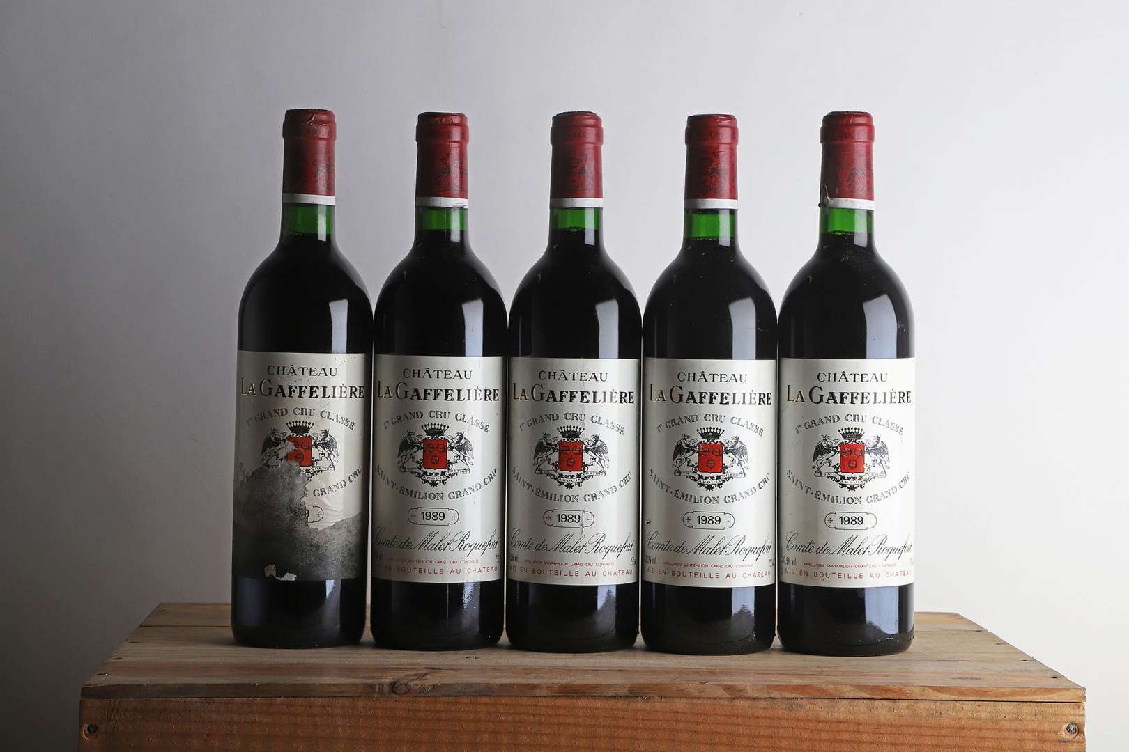 5 B CHÂTEAU LA GAFFELIÈRE (1 e.l|a| 1 e.a| 1 e.q.i. avec millésime partiellement lisible| 1 c.a. bas de jupe) - 1989 - GCC1B Saint-Emilion