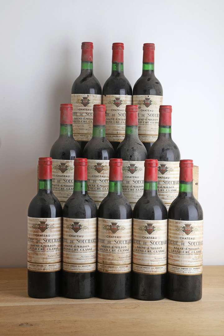 12 B CHÂTEAU FAURIE DE SOUCHARD (1 B.G| 2 B.G.- ET 2 T.L.B.+ e.t.h. dont 1 e.a| quelques accrocs bas de capsules) - 1976 - GCC Saint-Emilion