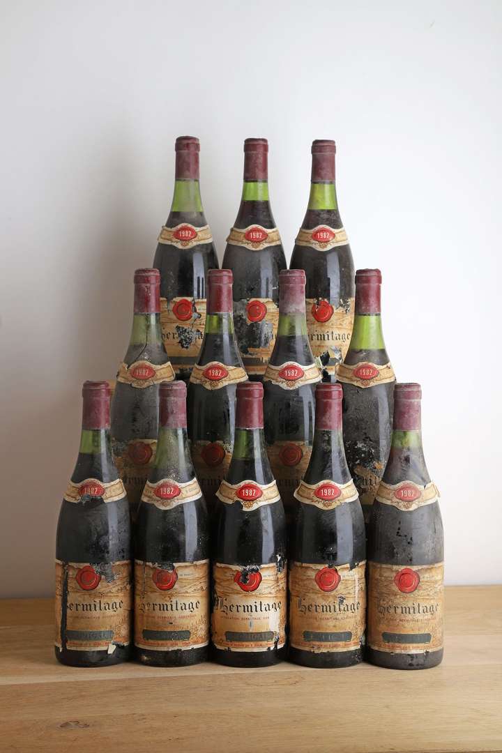 12 B HERMITAGE Rouge (2 à 3,5 et 3 à 4 cm| e.t.a. à e.q.i. fragiles| clm.s. à clm.a| c.s.) - 1982 - Guigal