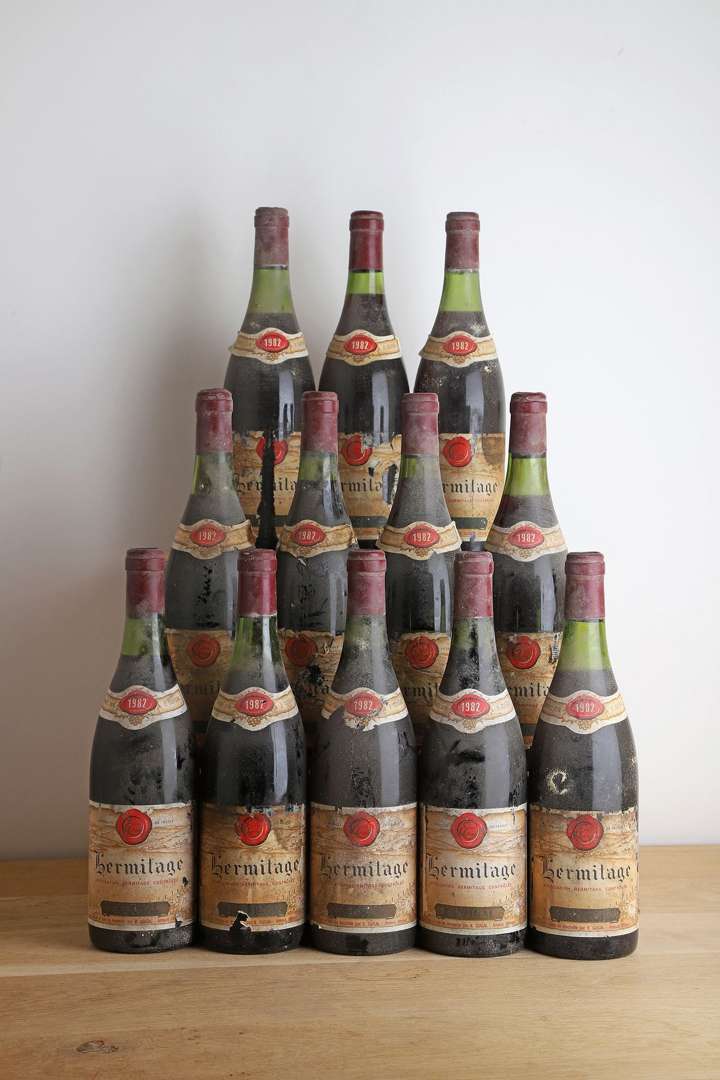 12 B HERMITAGE Rouge (1 à 3| 2 à 3,5 et 4 à 4 cm| e.t.a. à e.q.i. fragiles| clm.s. à clm.a| c.s.) - 1982 - Guigal
