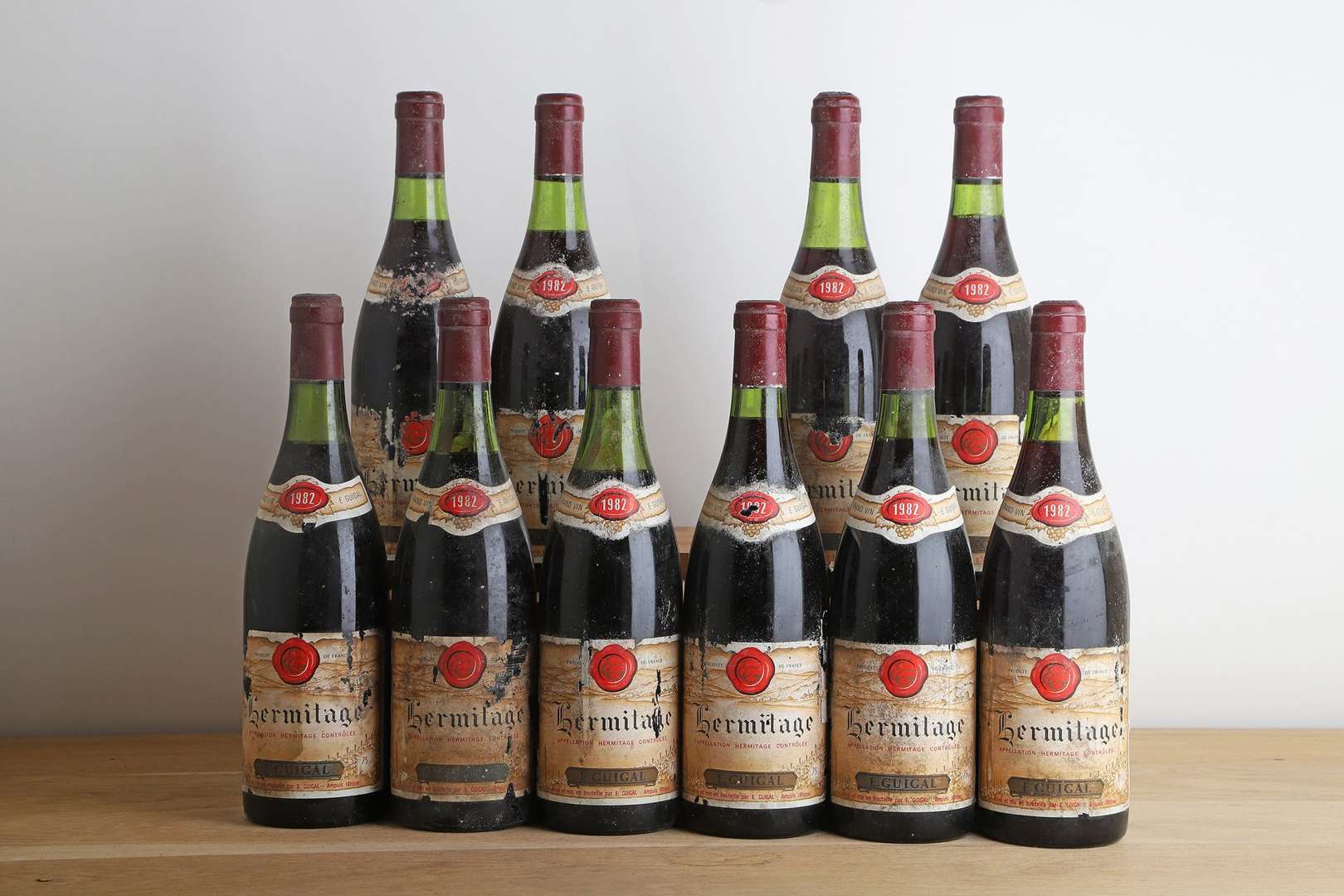 10 B HERMITAGE Rouge (1 à 3| 2 à 3,5 et 2 à 4,5 cm| e.t.a. à e.q.i. fragiles| clm.s. à clm.a. dont 1 illisible) - 1982 - Guigal