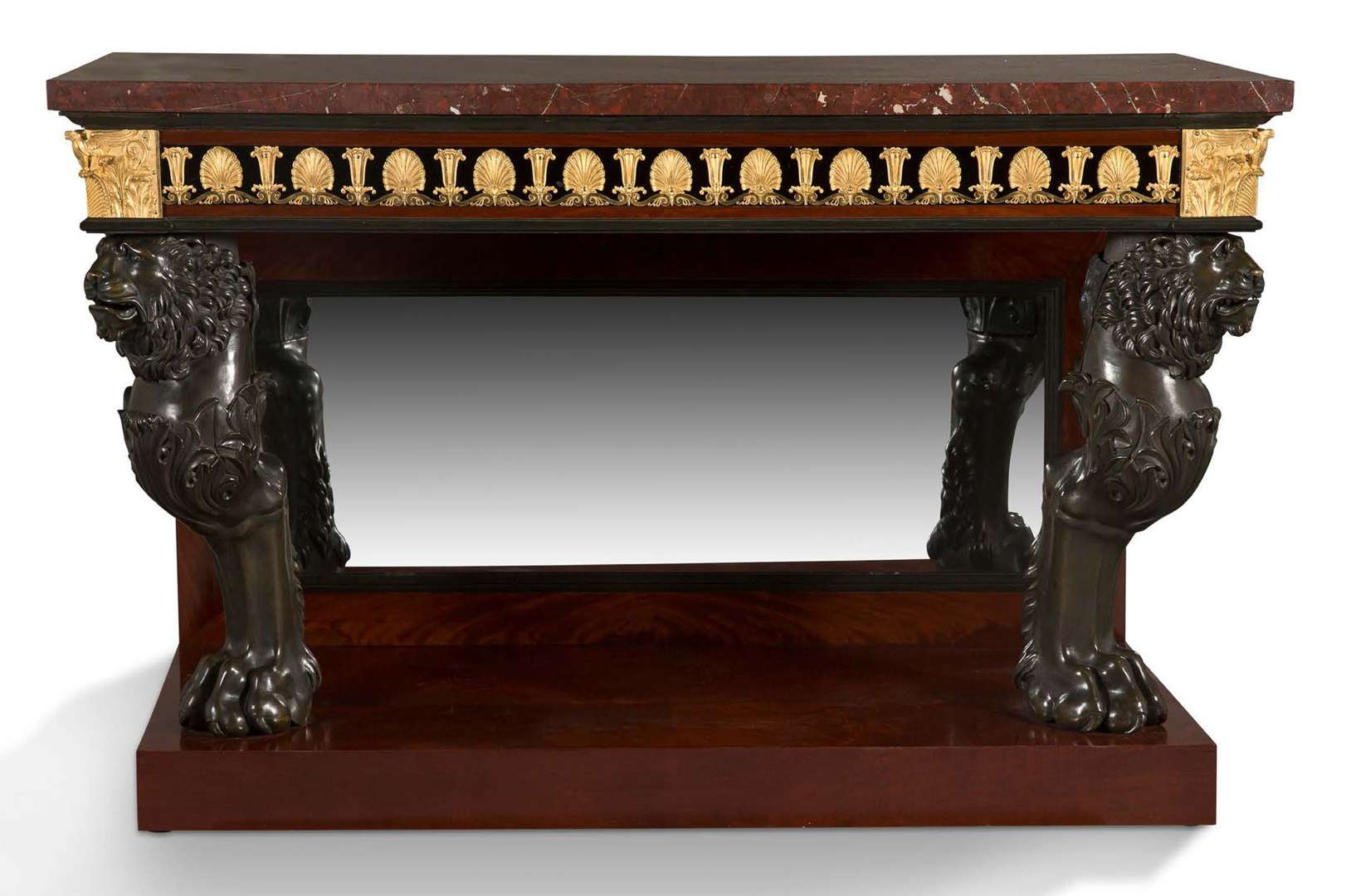 *PAIRE DE CONSOLES rectangulaires à fond de glace en placage d'acajou flam