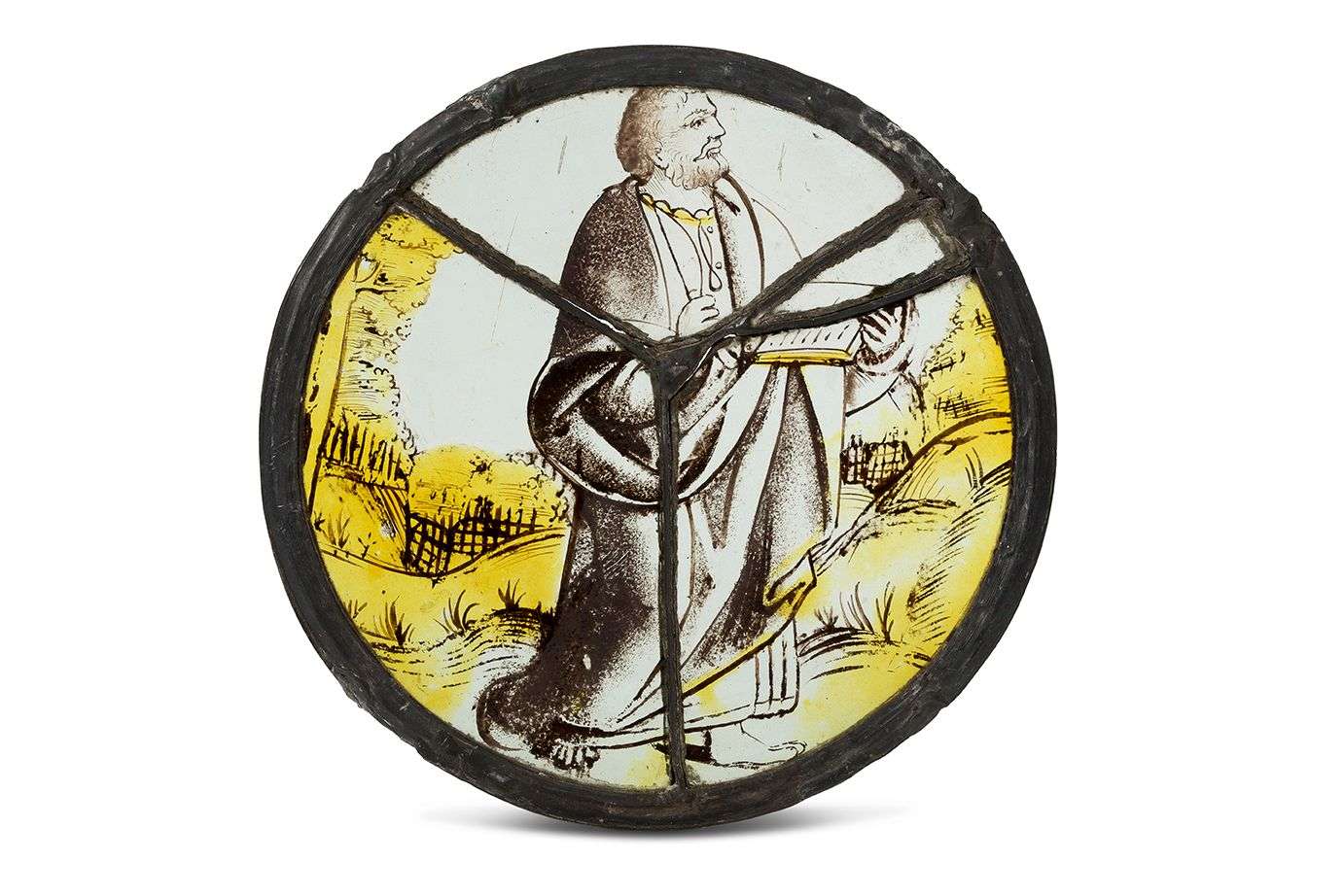 RONDEL en grisaille et jaune d'argent représentant