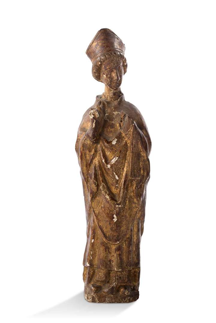 SAINT ÉVÊQUE en bois sculpté et doré, dos plat.