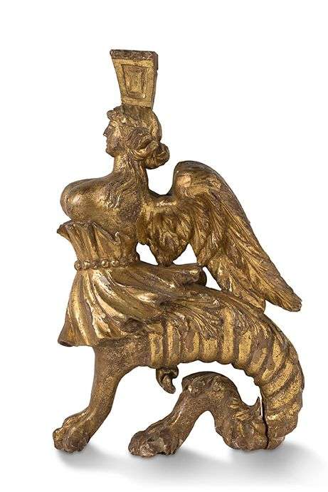 PAIRE DE HARPIES en bois doré et sculpté en ronde-bosse et doré formant su