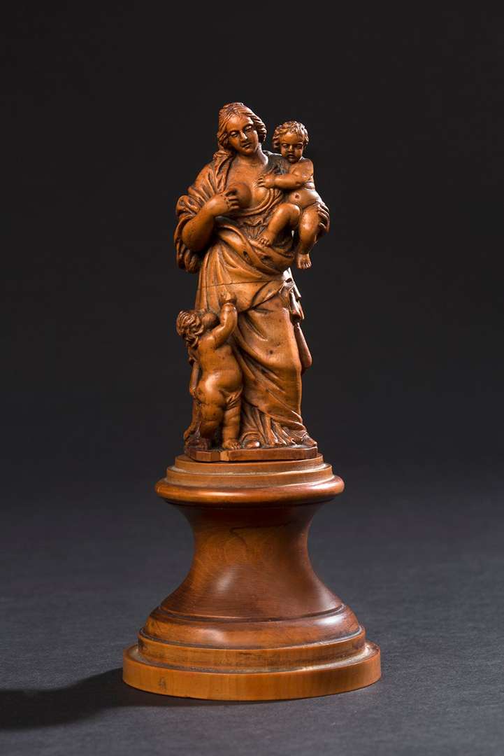 ALLÉGORIE DE LA CHARITÉ statuette en buis sculpté représentant une femme a