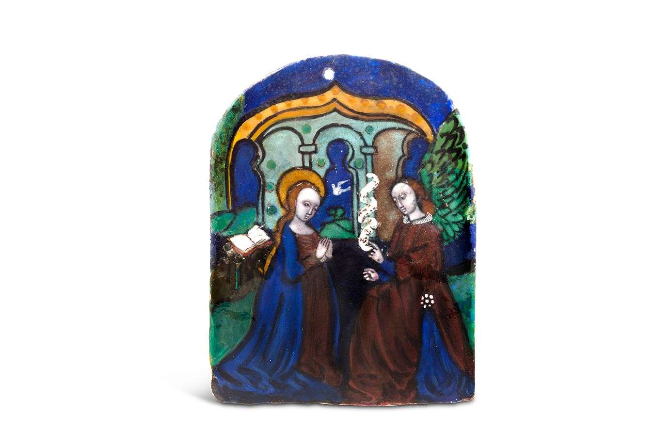 PLAQUE DE BAISER DE PAIX en émail peint polychrome, représentant l'Annonci