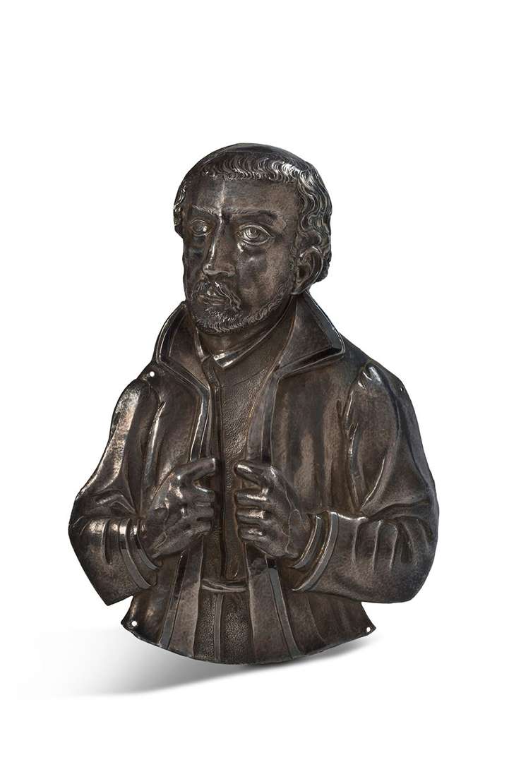 BUSTE DE SAINT en argent repoussé et gravé. Poinçons NAP/86 surmonté d'une couronne et du maître orfèvre